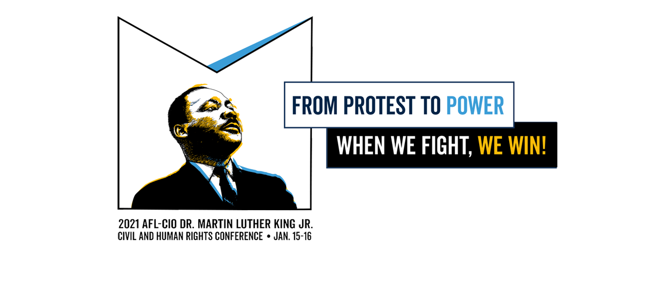 Emerging from a year that has presented many challenges and obstacles, the theme for the 2021 MLK Conference is “From Protest to Power: When We Fight, We Win,” to honor the brave and bold leadership of the activists among us and celebrate the power of people united in collective action toward justice for all.